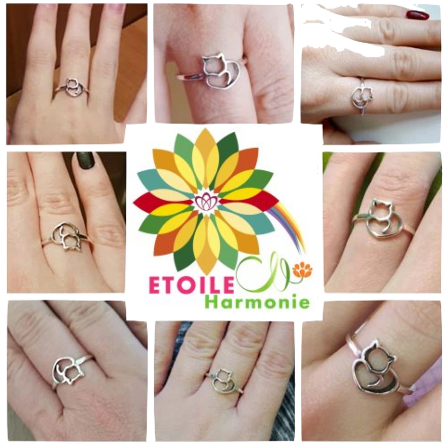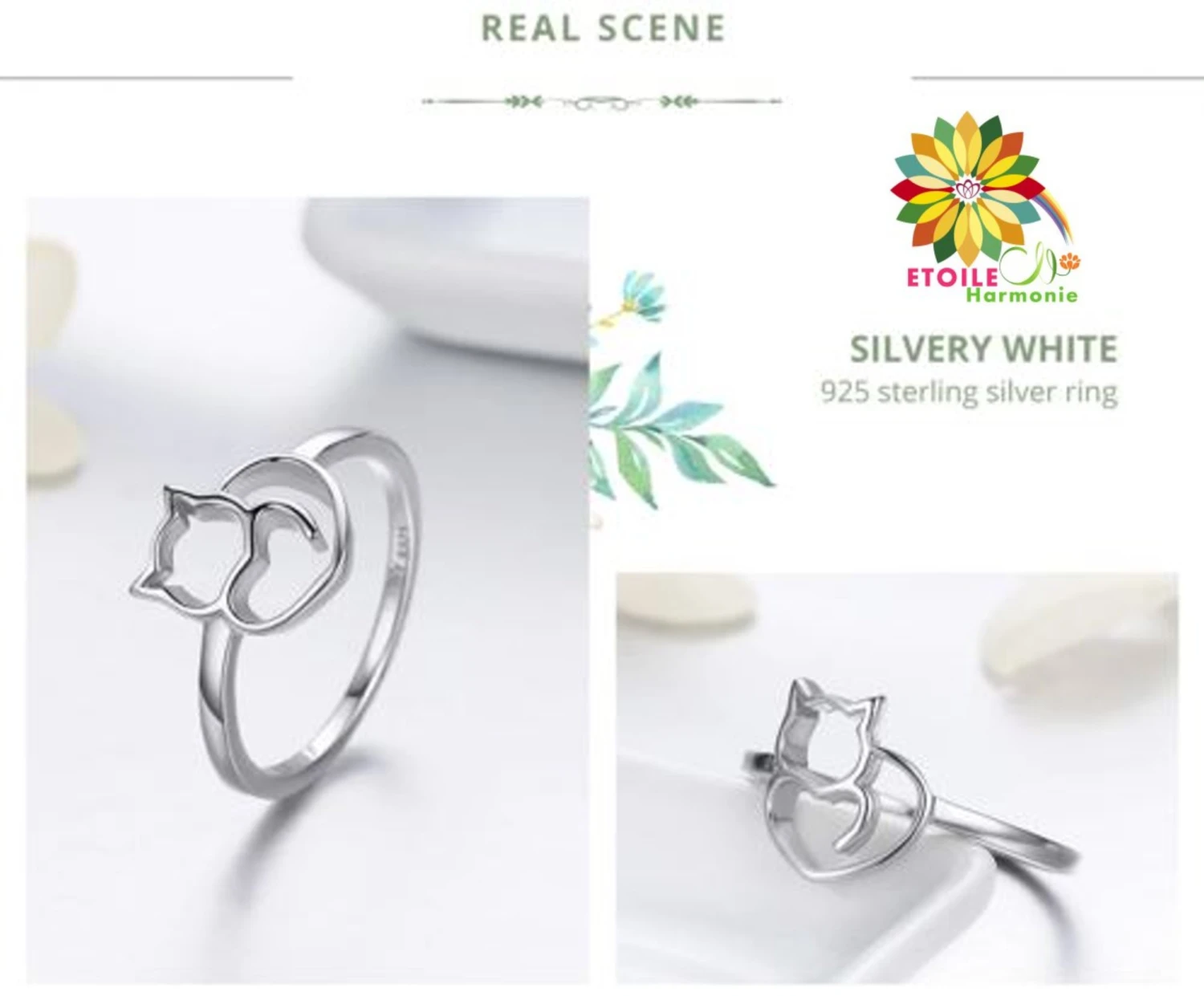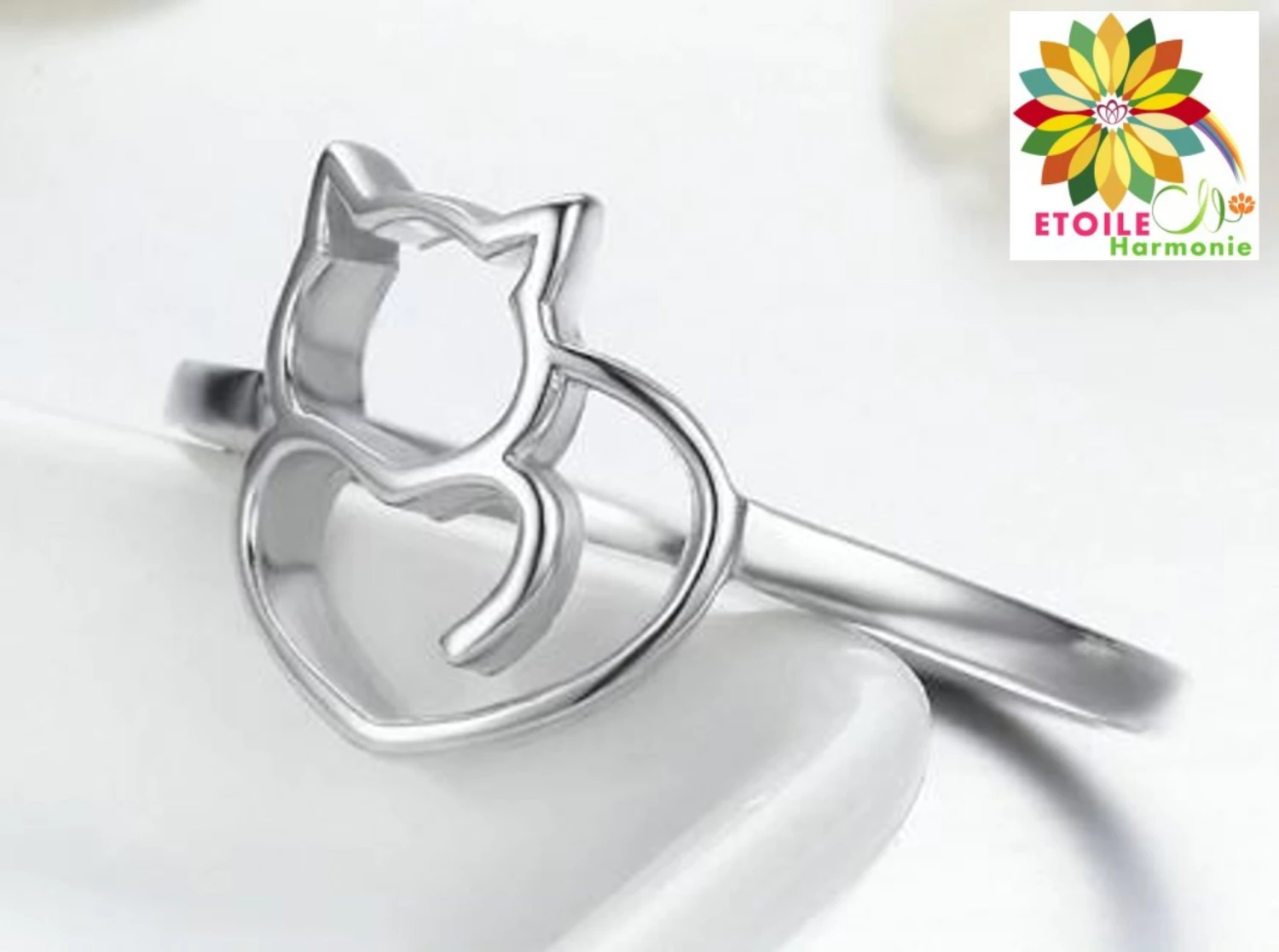 Bague avec symbole un petit chat mignon et un jolie cœur en argent 925 sterling.