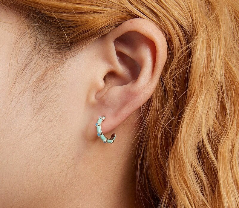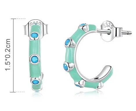 Jolie boucles d’oreilles demi-cercle turquoise en argent 925 pour femme.