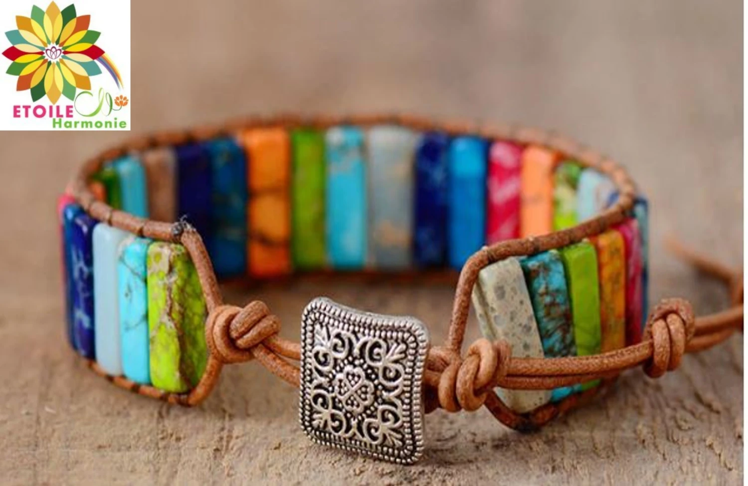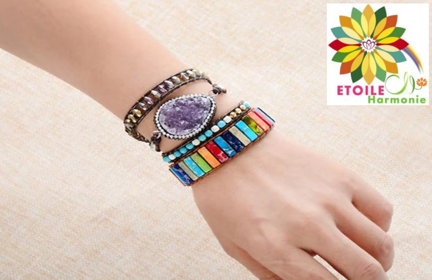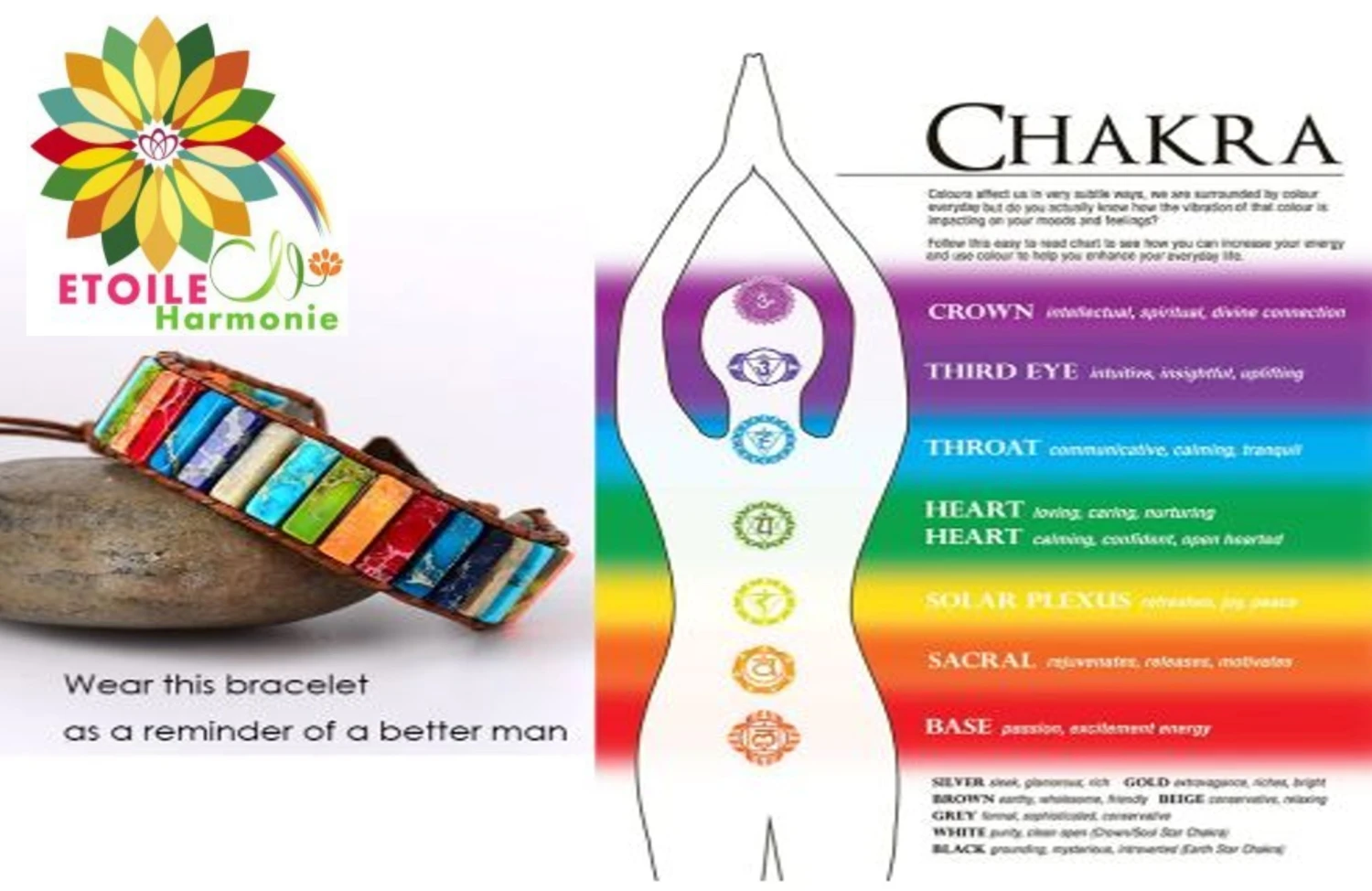 Bracelet de pierres naturelle qui va travaillé sur les chakras et qui éloignent les énergie négatives qui sont autour de vous avec harmonie.