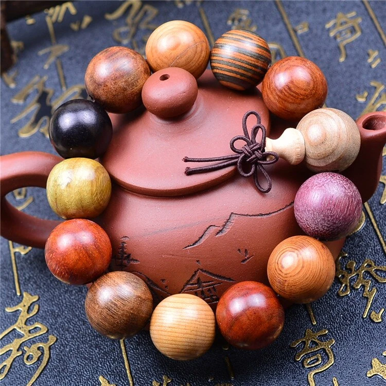 Description du produit « Bracelet perles bois santal bouddhiste – Fait main »