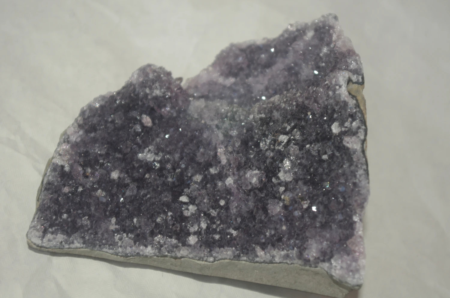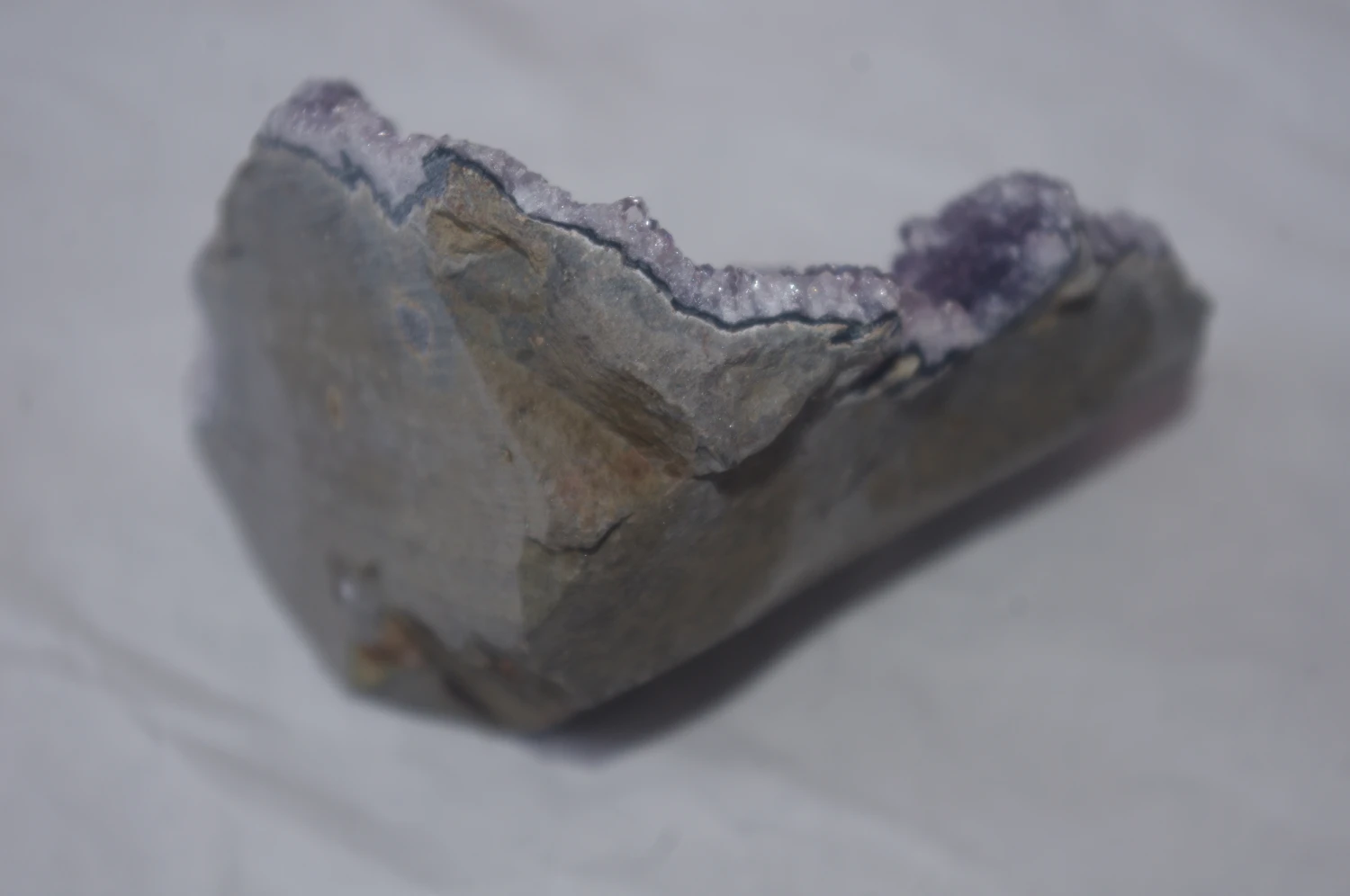 Géode améthyste brute d’Uruguay de 448 gr qui peut être aussi un bel objet de décoration mais aussi elle agit sur votre habitation dans la pièce où elle se trouve