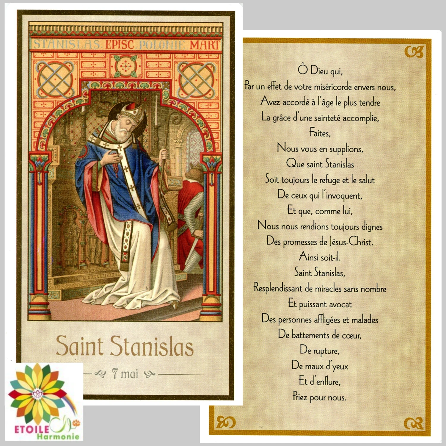 Description du produit « Image pieuse Saint Stanislas du 7 mai »