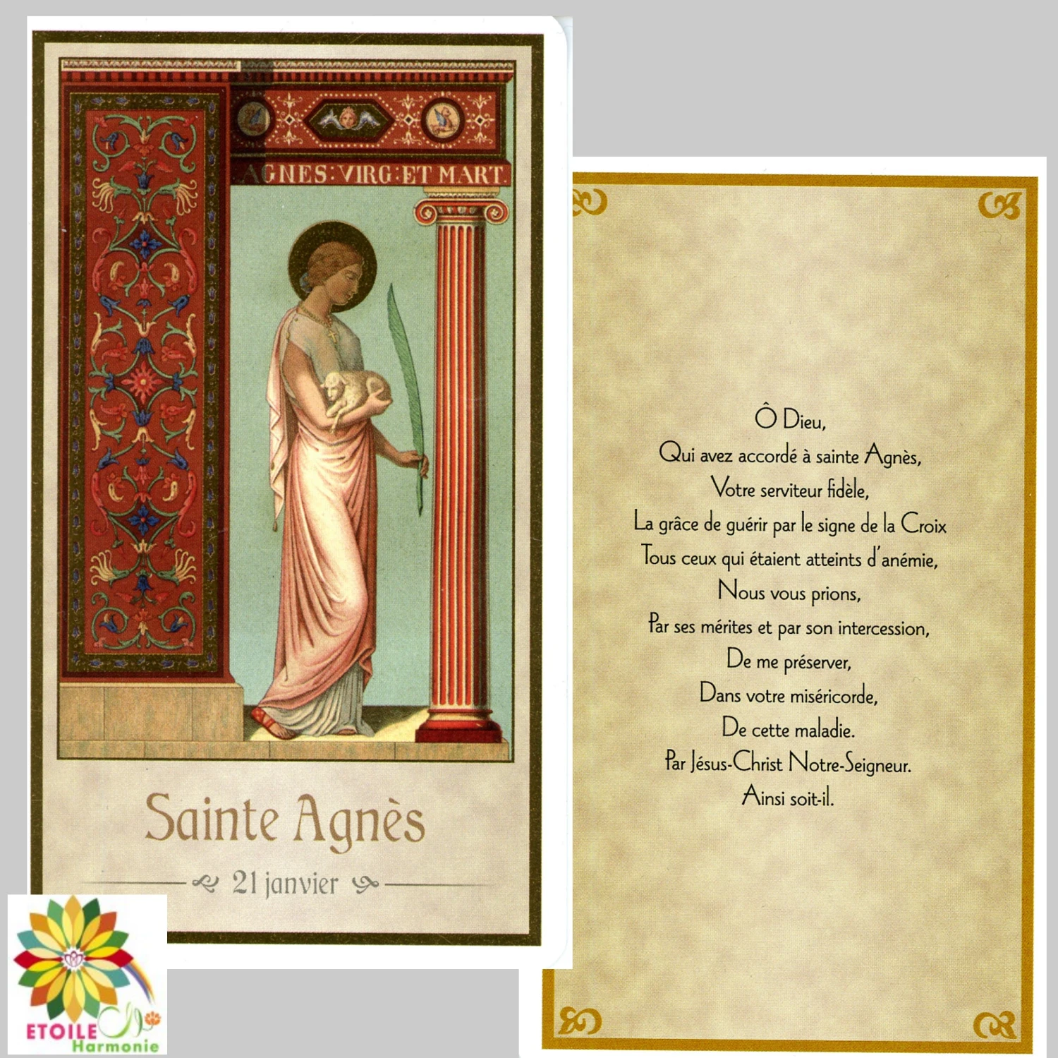 Description du produit « Image pieuse Sainte Agnès du 21 Janvier »