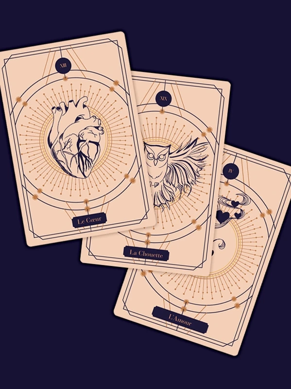 Accompagné d’un livret indiquant plusieurs pistes d’interprétations pour chacune des cartes, ainsi que les significations des diverses combinaisons et méthodes de tirage.