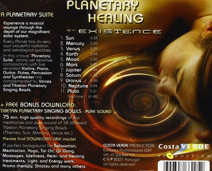 Le groupe Existence a Ă©tĂ© fondĂ© par la talentueuse chanteuse et multi-instrumentiste Margot Reisinger qui travaille depuis des annĂ©es avec Oliver Shanti. « Planetary Healing – Tibetan Singing Bowls », le nouvel album double du projet Existence, composĂ© et arrangĂ© par Margot Reisinger, contient, dans le premier CD, une suite de compositions inspirĂ©es par l’Ă©nergie particuliĂšre de chaque planĂšte du systĂšme solaire.