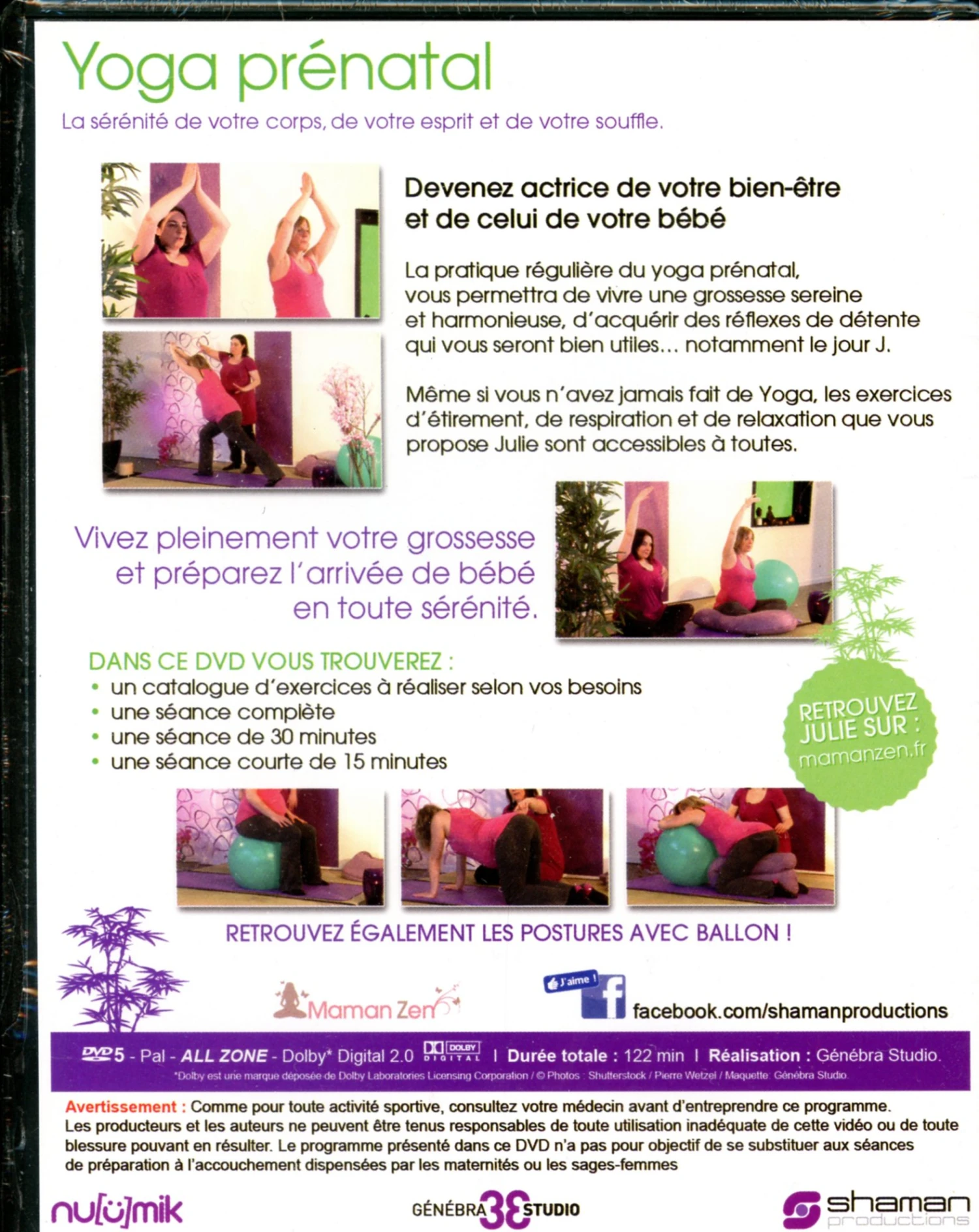 Description du produit « Yoga Prénatal – Coffret 2 DVD – 3 Séances de postures adaptées à tous les stades de la grossesse »
